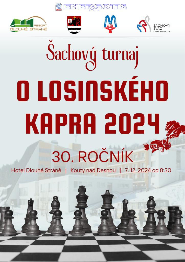 30. ročník Losinského kapra se uskuteční 7. prosince 2024 od 8:30 v Hotelu Dlouhé Stráně v Koutech nad Desnou. Tato akce slibuje výbornou atmosféru a bohatý program pro všechny účastníky.