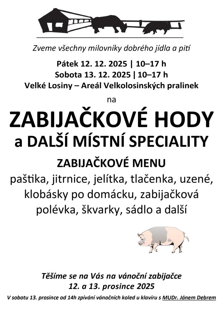 Adventní akce ve Velkolosinské pralice, krásný program, jarmarkový prodej, zabijačka, prodej ryb.